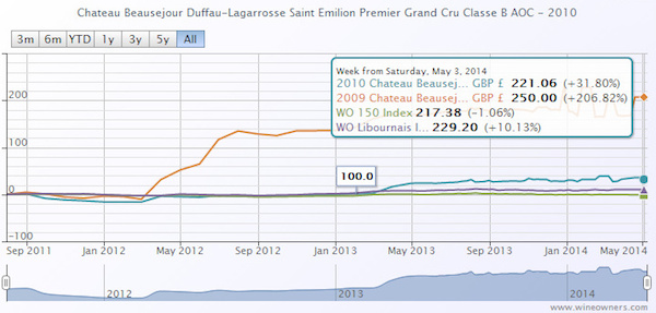 Beausejour Duffau is a great success story of recent years, especially if you are one of the buyers lucky enough to have secured an allocation of the 2009 (in particular) and 2010, both of which received price-boosting perfect ratings from Wine Advocate. The 2009, for example, which has been trading at £2850 has shown nothing but upside since release. The opening EP price here was £800, which is enough to deter the casual buyer, but those who fell in love with the wine from barrel samples have had their faith well rewarded by a market price of £3000, an increase of 270%, which is truly remarkable in an otherwise relatively stale market, and vastly outstrips the performance of pretty much anything else.