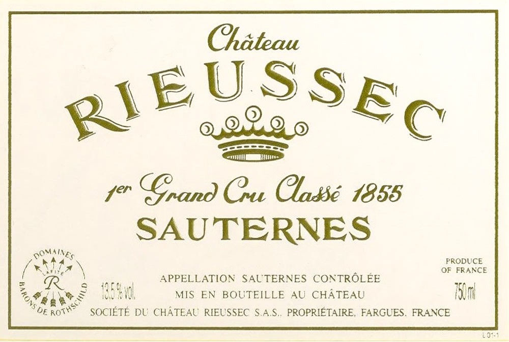 Back Chateau Rieussec Sauternes Premier Cru – Not applicable /100 France > Bordeaux > Graves > Sauternes × Login Screen Opened We have opened a login screen for you on another tab. Please refresh this one when you have logged in. Overview Prices Reviews & scores Trading PPP Wine Information Region France > Bordeaux > Graves > Sauternes Producer Chateau Rieussec Type White - Sweet Grape Sauvignon Blanc, Semillon Advice No drinking range Vineyard Chateau Rieussec Producer Chateau Rieussec Appellation Sauternes Designation AOP Classification Premier Cru Cuvee Bottling Gallery Europe GBP Graph Type: Wine Price (Bottle 75cl) Wine Price (Case 12x75cl) Wine Price (Percent) Source data partner: Wine-Searcher.com The Wine Collector score RP - V - JR - The Wine Collector score is the average of all critic scores for this wine Tasting notes No critic tasting notes yet available for this wine. Profile Contact details Name Address Website Email Phone Wines by this Producer Photos Videos Location Wine Passport is only available for wine entries in your cellar Trade Summary (Bids and Offers) There are no current offers or bids for this wine. All offers, bids and your wine Description Date Case Qty Tax Type Offerper Case Bidper Case Purchaseper Case Total Location Action Relative Value Score